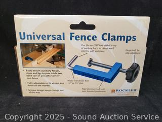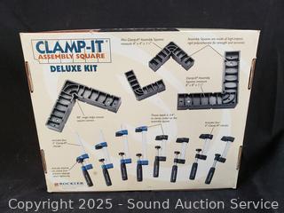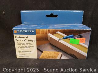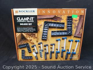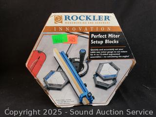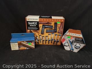 Rockler Clamp-It Deluxe Kit, Rockler Perfect Miter Setup Blocks, Rockler Universal Fence Clamp. All appear to be complete.