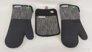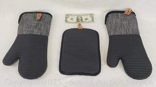 Lot #0286: 3pc KitchenAid Black Potholders & Oven Mitts