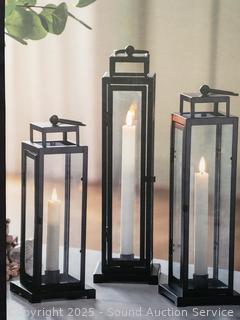 Lot #0274:     3pk Black Finish Tower Candle Lanterns w/Remote
