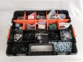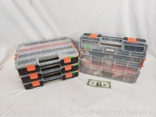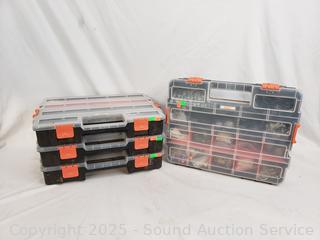 All but one is full of beads, electrical connector, clips hardware. Each interlocks with each other for easier movement. Refer to photos for contents.