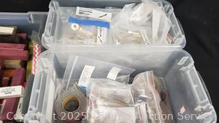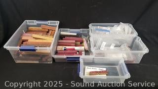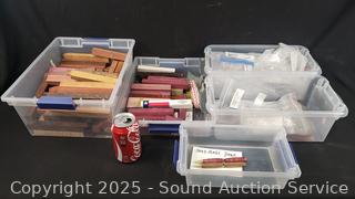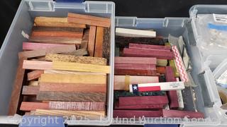 Lot #0151: 5 Totes Full of Hardwood Barrel Pen Turning Blanks & Pen Hardware