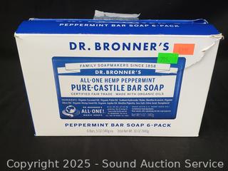 Lot #0296: 6pk Dr. Bronner's All-In-One Hemp Peppermint Pure-Castile Bar Soap