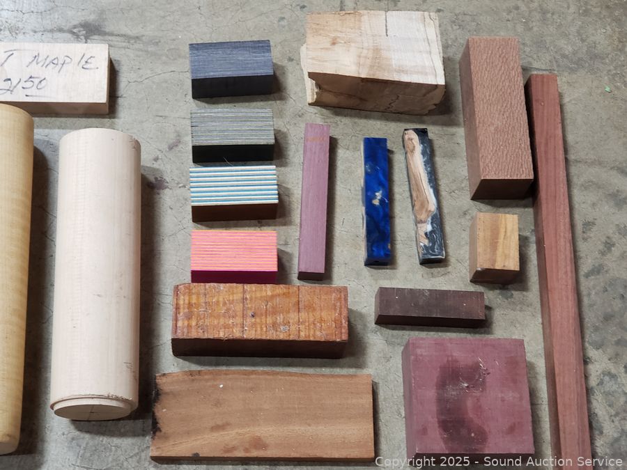 Approx. 2.5" to 12" lengths, 3/4" to 3" Dia. Purple Heart, Osage Orange, Walnut, Maple, Rosewood? etc. Refer to photos for lot contents more details.