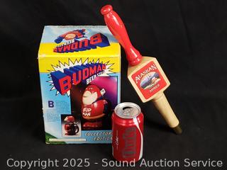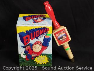 Lot #0183: Budman Beer Stein & Alaskan Amber Beer Tap Handle