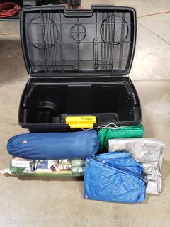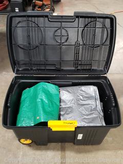 Lot #0099: Contico Rolling Storage Bin w/2 Camping Tents & Tarps