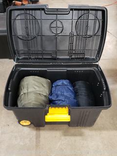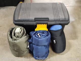 Lot #0098: Contico Rolling Storage Bin w/3 Sleeping Bags