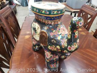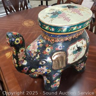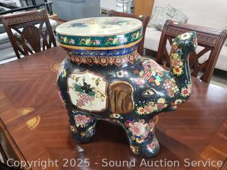 Lot #0055: Hand Painted Porcelain Elephant Garden Bench/Stool