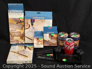 Lot #0185: Rockler Cribbage/Dominoes Drilling Guides, Bench Cookies, Etc