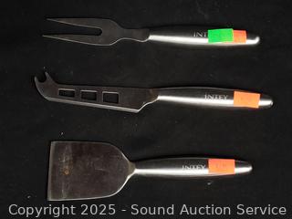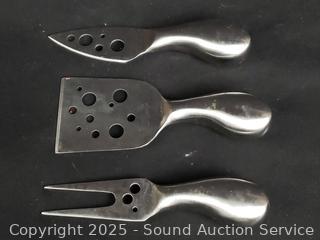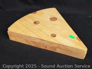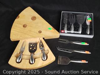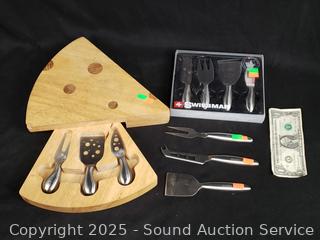 Lot #0226: Wood Cheese Cutting Block/Storage & 10 Stainless Utensils