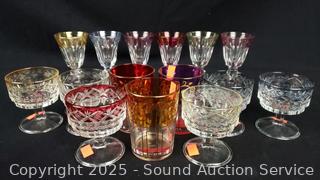 Lot #0123: 15pc Crystal Color Cut to Clear Classware