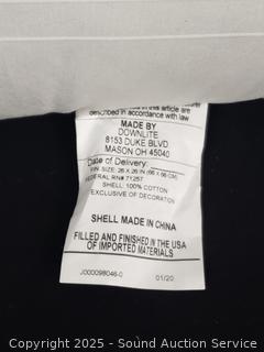 400TC Cotton shell. 26" x 26". Don't see any issues.