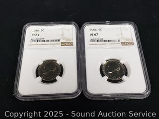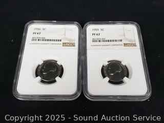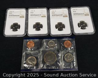 1985-P Proof Mint Set, (2) 1955 & (2) 1956 PF67 Old Jefferson Nickels. ATTN: We are not coin or currency experts or graders, please use your own judgement when bidding.