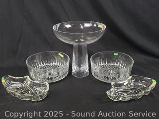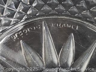 2 Arcoroc France Large 9" bowls, wavey edge dish, 11" H x 10.5" Dia. compote vase.