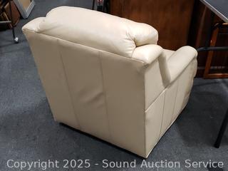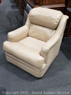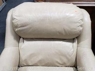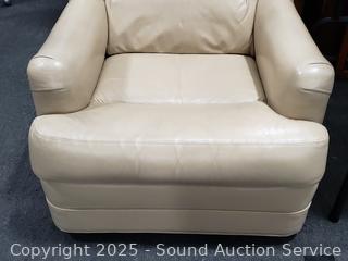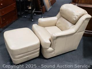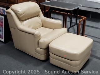 Lot #0015: Beige Leather Armchair w/Ottoman