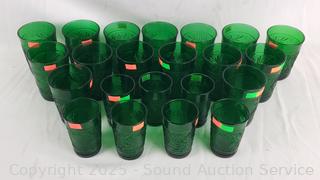 Lot #0171:     Green Fleur de Lis Embossed Glasses