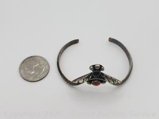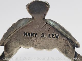 Missing one of the stone settings. Signed Mary S. Lew, no silver mark, tested silver. 2.5" Dia. TW:19.2g.