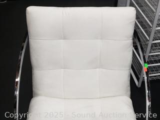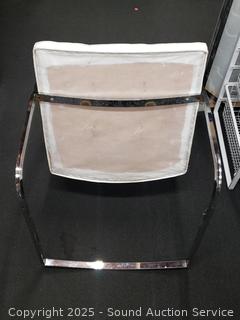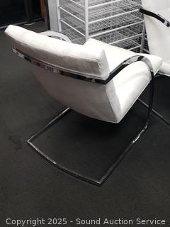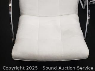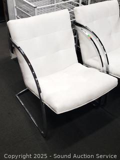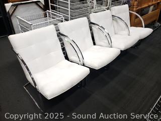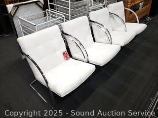 Lot #0036: Set of 4 Contemporary Chrome Finish Ivory Upholstered Chairs