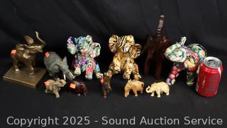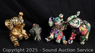 Patchwork, bronze, resin, wood construction. Approx. 2.5" to 9" tall. Refer to photos for lot contents, more details.