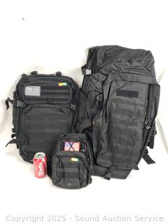 Lot #0171: 2 Black Tactical Backpacks & Shoulder Bag