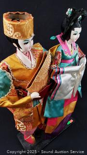 Lot #0122: 2 Handcrafted Cloth Body Geisha Dolls