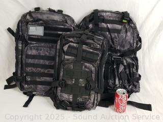 Lot #0175: 3 Black Tactical Backpacks