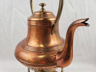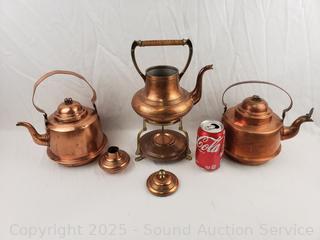 Lot #0079: 3 Copper Teapots 1 with Burner