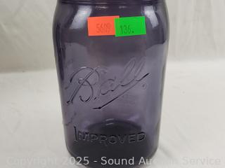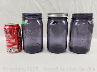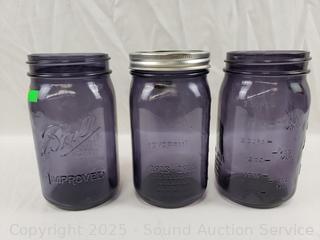 Lot #0136: 3 Purple Ball 1qt Canning Jars w/1 Lid