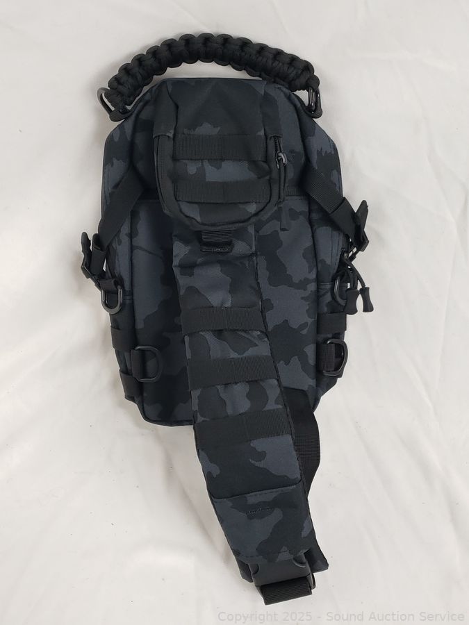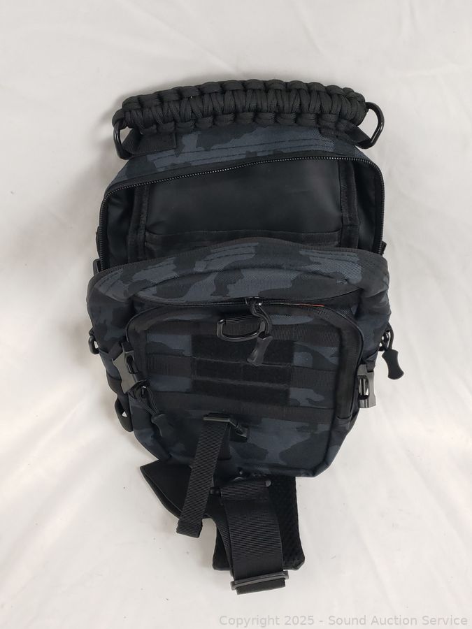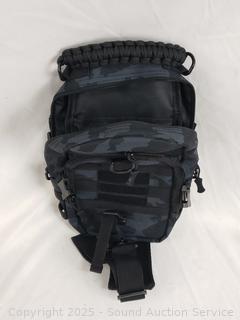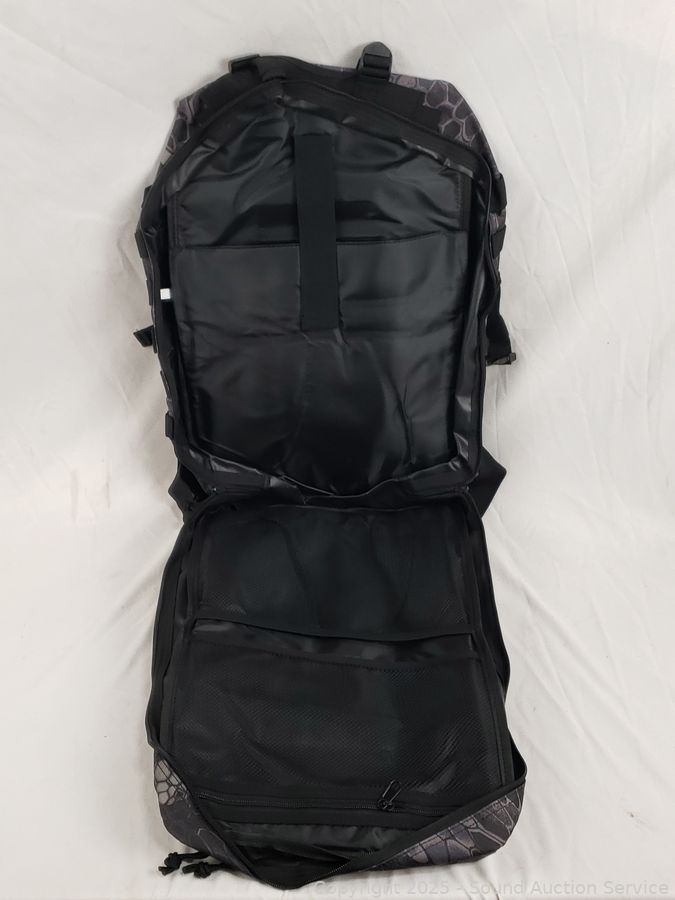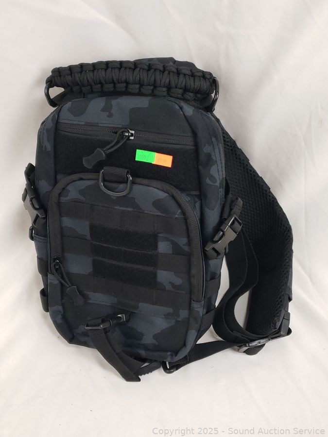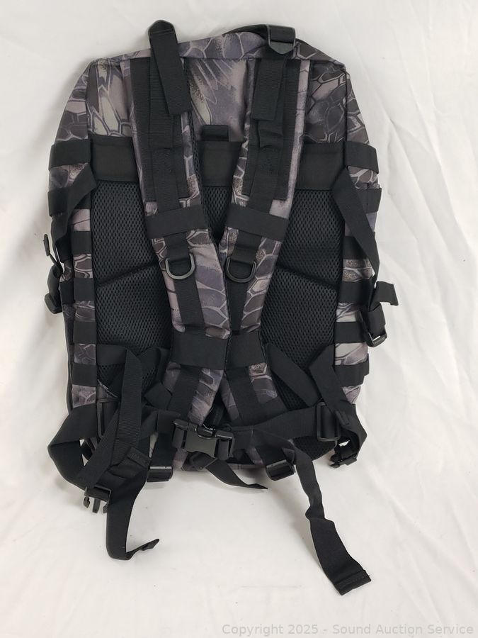 Lot #0189: 3 Purple/Gray/Black Tactical Backpacks, Shoulder Bag