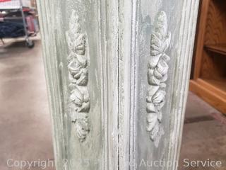 36" H x 9.5" x 9.5". Distressed finish. Don't see any major issues.