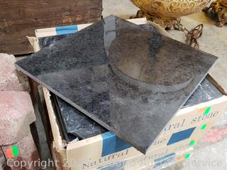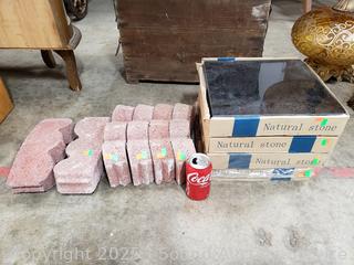 Lot #0047: (6) Garden Border 10" x 4" Curved Bricks & 4 Boxes of Black Natural Stone 12" Tiles