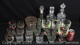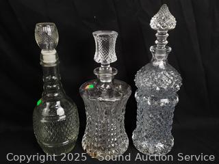 Lot #0168: Assorted Clear Glass Decanters & Glassware