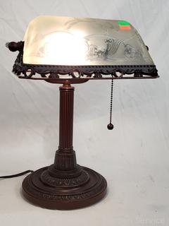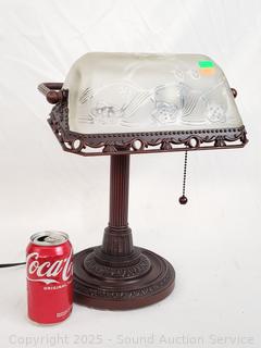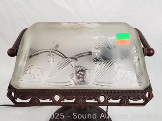 Lot #0153: Bronze Finish Glass Shade Table Lamp