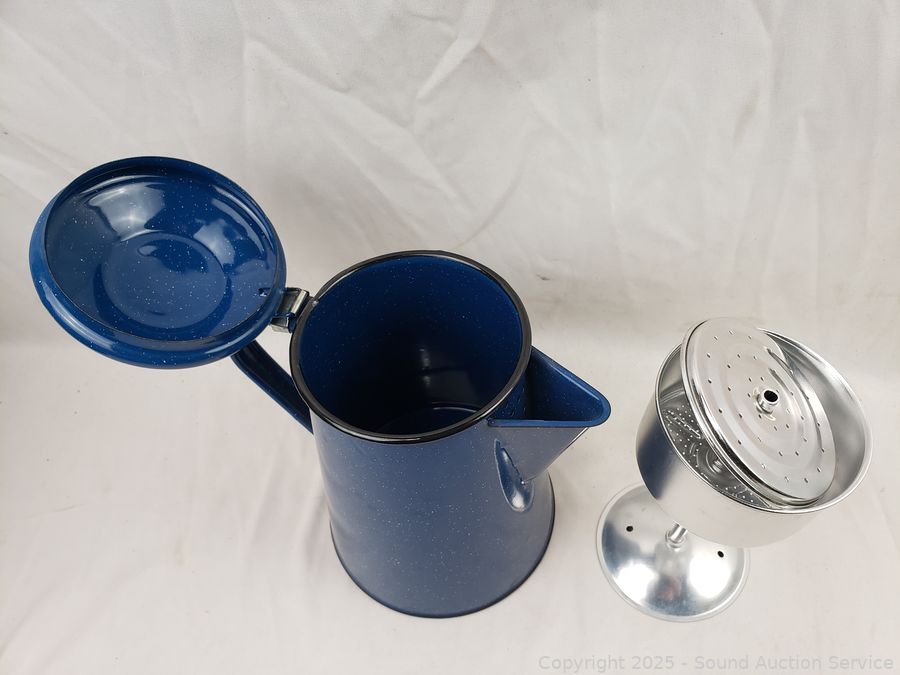 Lot #0224: Enamelware Percolator Coffee Pot, Boiling Pot w/Jar Tongs, Steam Insert