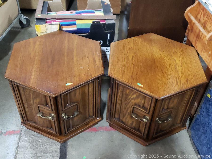 Lot #0030: Pair of Oak Hexagon Side Table Cabinets