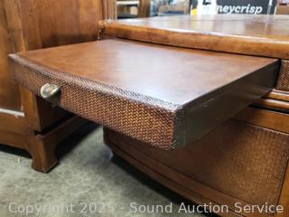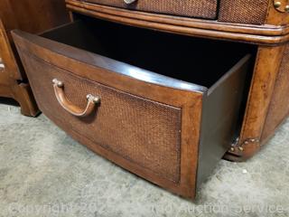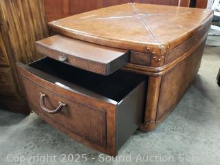 Lot #0024: Wood Basketweave 2-Drawer/2-Tray Coffee Table