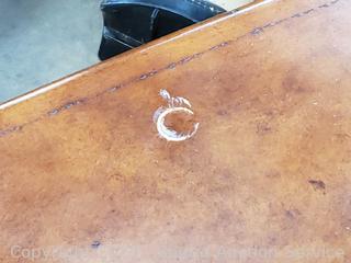Has a ridged design in the top. See a ring & some minor scuffs, pullout drawers & tray on both sides. 21" H x 42" x 32".