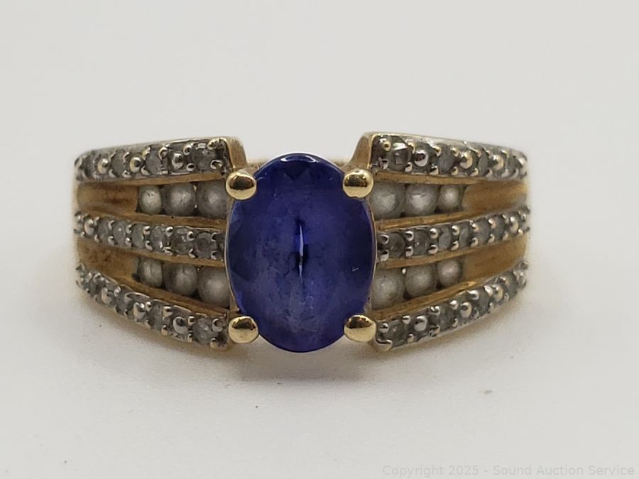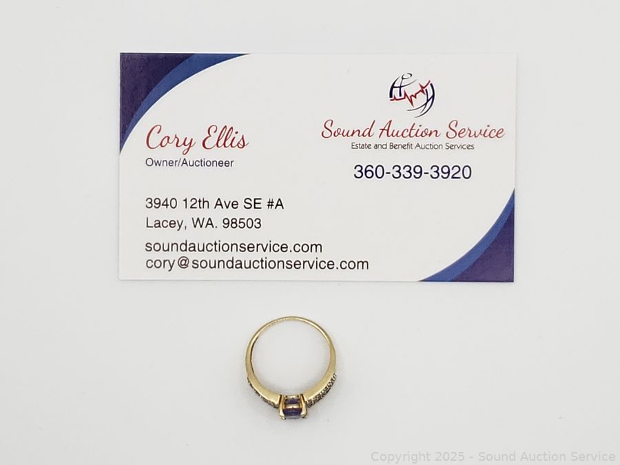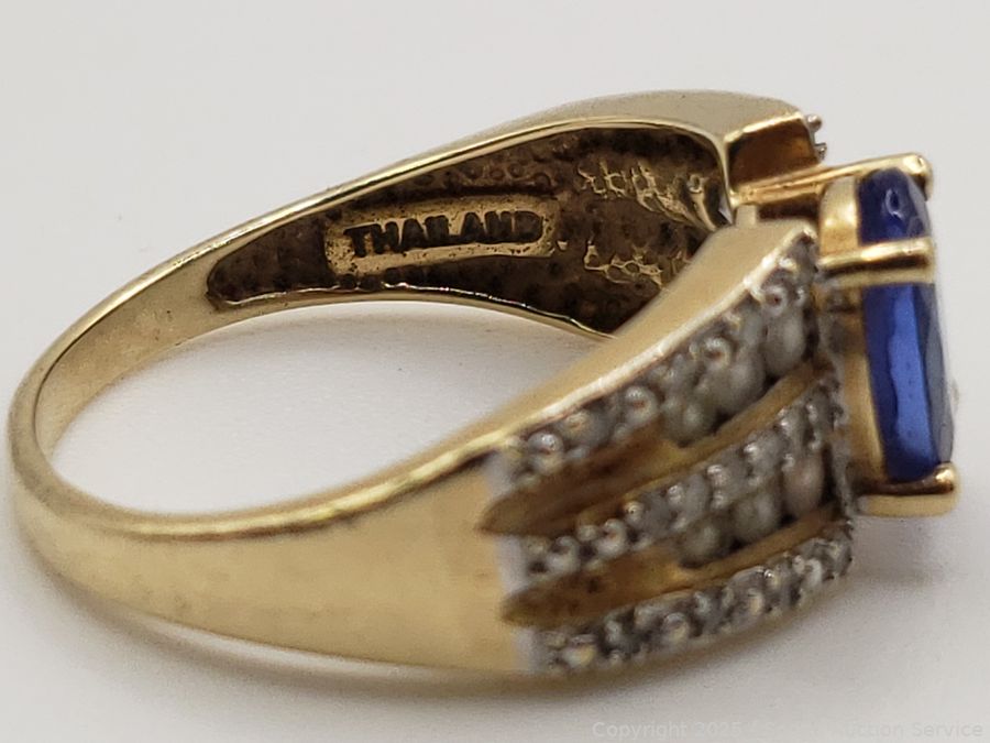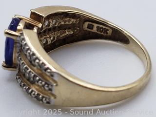 Lot #0153: 10K Gold Diamond Blue Stone Ring S:7