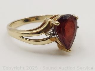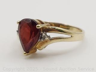 Lot #0154: 10K Gold Garnet & Diamond Ring S:7