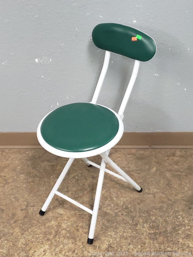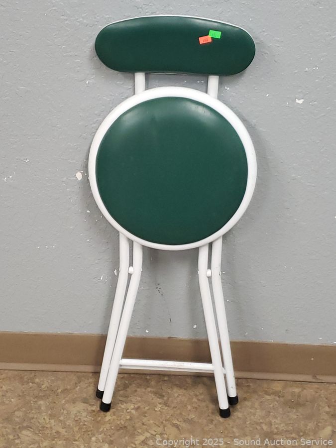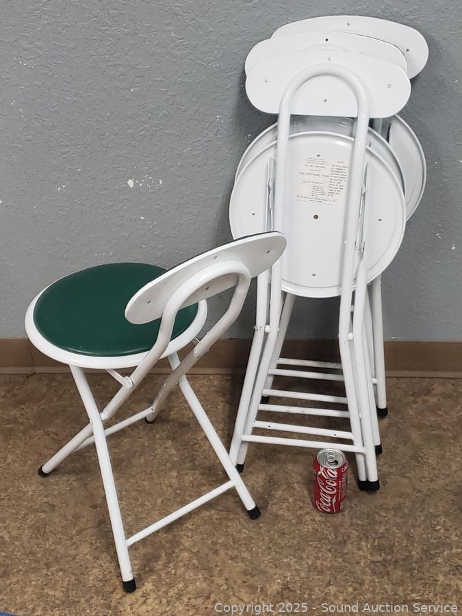 Lot #0063: 4 White Finish Green Vinyl Seat Chairs/Stools