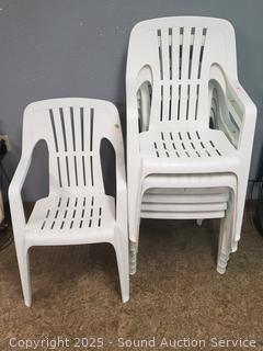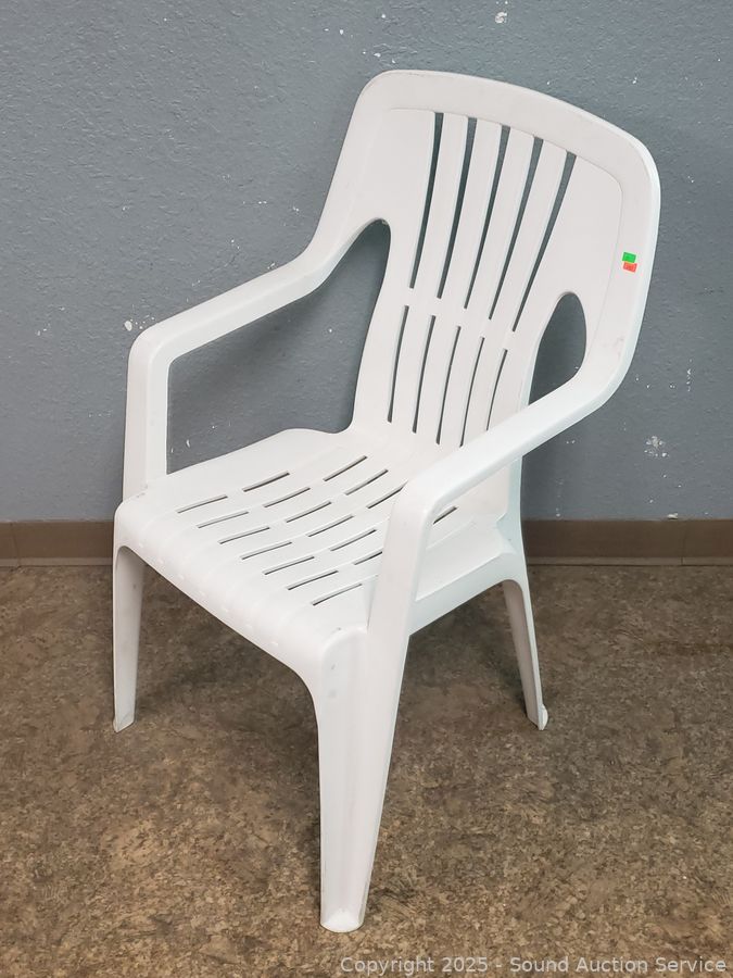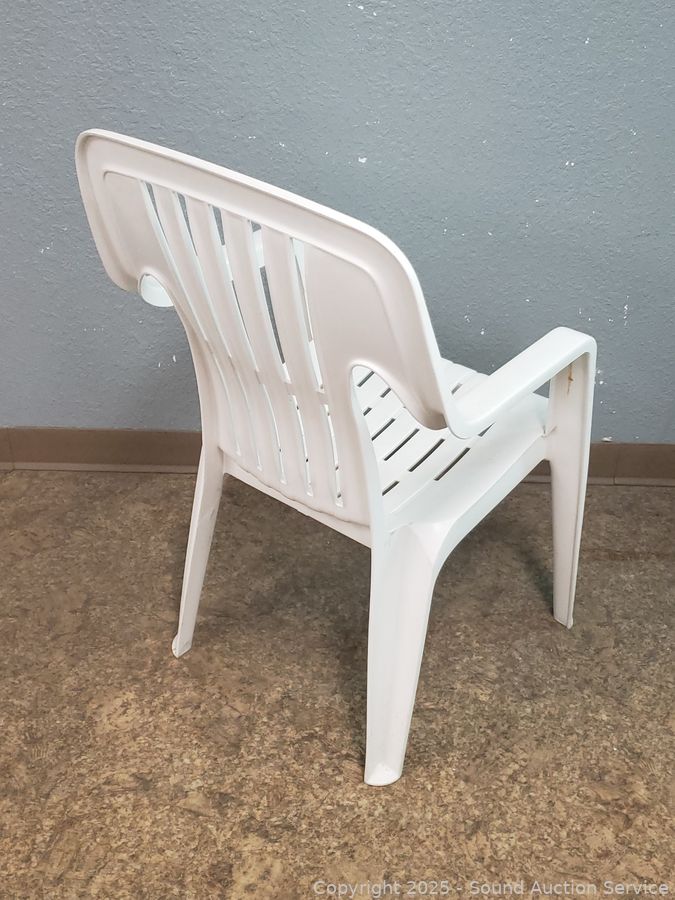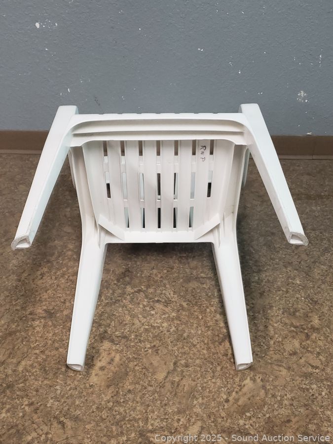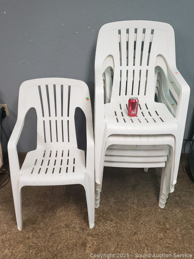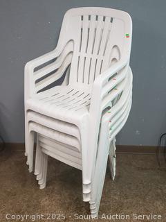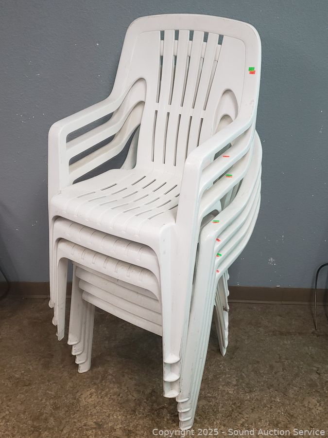 Lot #0067: 7 Stackable White Plastic Patio Chairs
