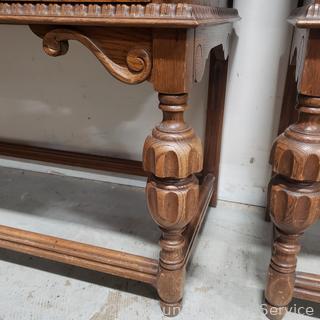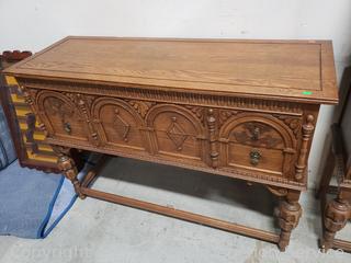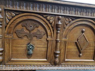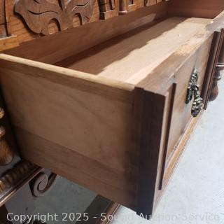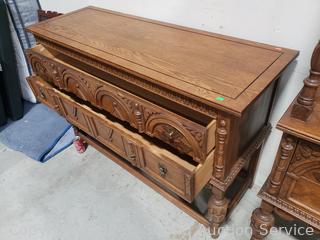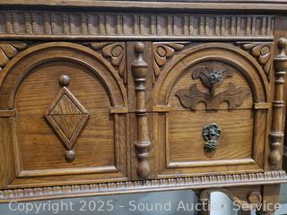 Lot #0005: Antique Empire Quartersawn Oak Carved Accent 2-Drawer Buffet