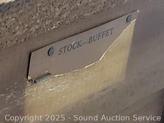 Missing a drawer pull for top drawer. 35" H x 52" W x 18" D. Solid wood construction, dovetail joinery. In great cosmetic condition. Matches the next lot.