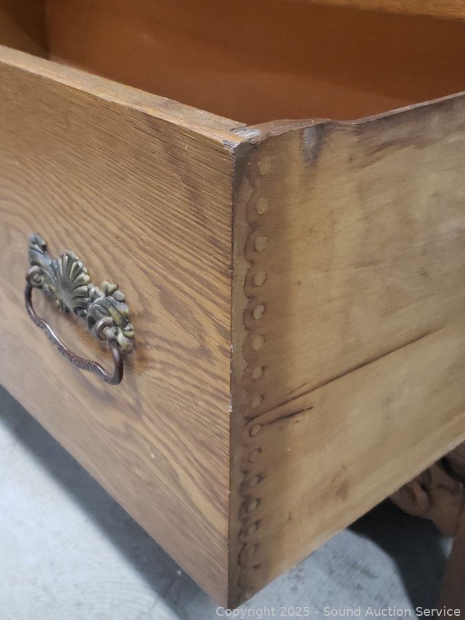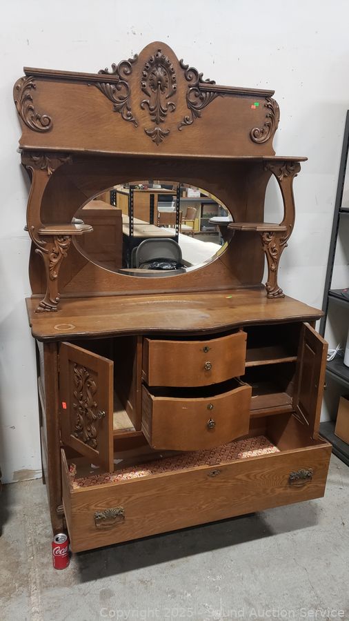 Lot #0007: Antique Quartersawn Oak Mirrored Buffet