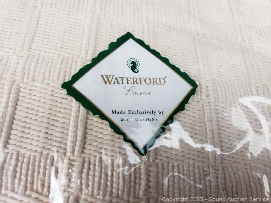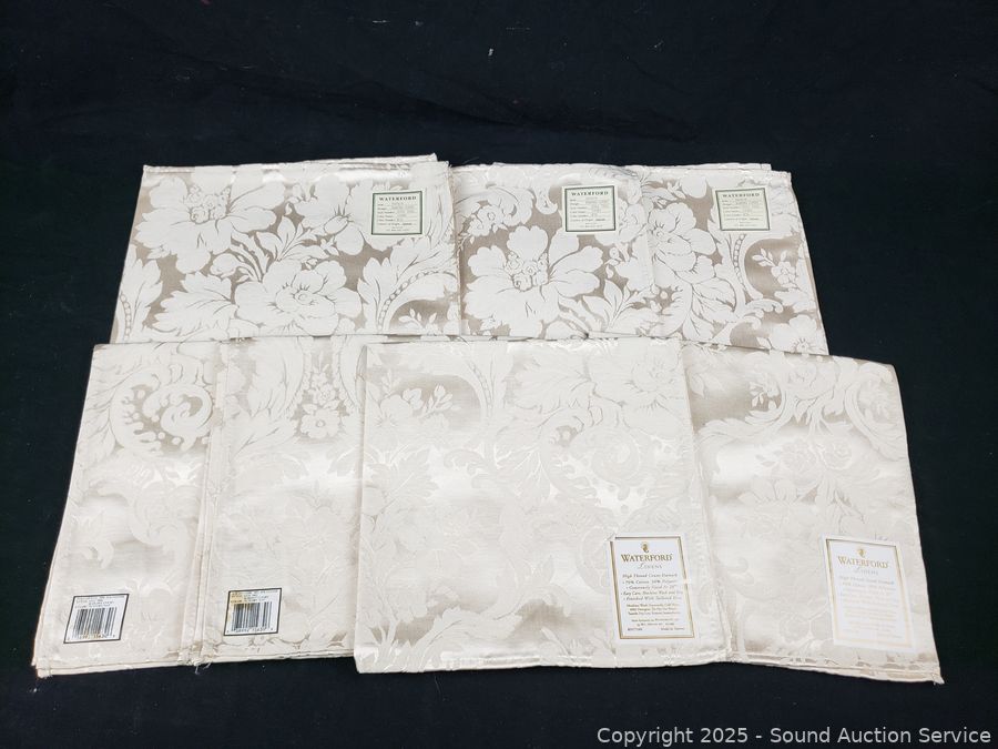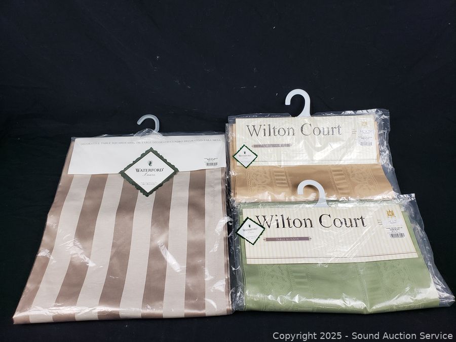 3 Waterford table runners 14" x 70", placemat sets, Waterford napkins, etc. Refer to photos for more details.