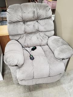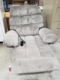 Lot #0021: Gray Upholstered Rocking Reclining Massaging/Heat Chair