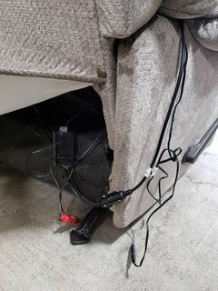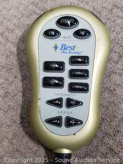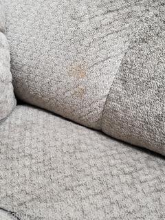 Manual recline. Power massaging & heat. Appears to be functioning as intended. Some minor dirty spots/stains. 42" H x 38" W x 20" to seat.