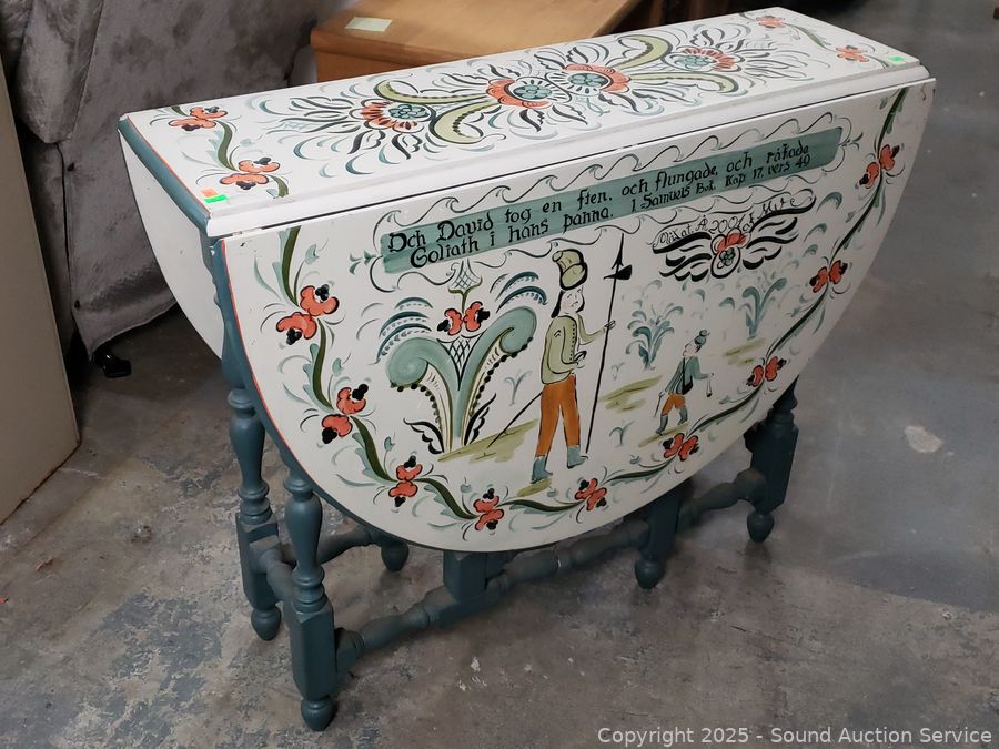 Lot #0037: Hand Painted Swedish? Scene Gate Leg Table