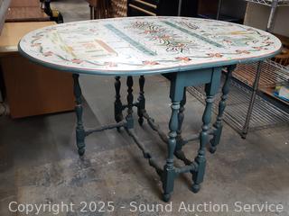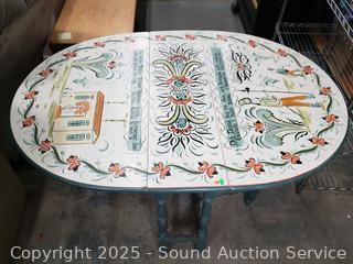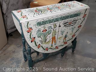 Lot #0037: Hand Painted Swedish? Scene Gate Leg Table