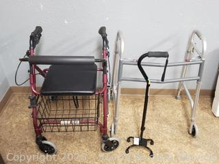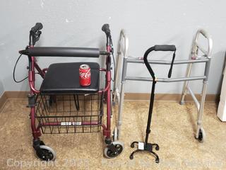 Lot #0058: Lumex Walker Chair, Aluminum Walker & Adjustable Cane
