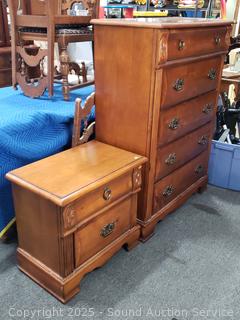 Lot #0002: Matching Maple 5-Drawer Dresser & Nightstand